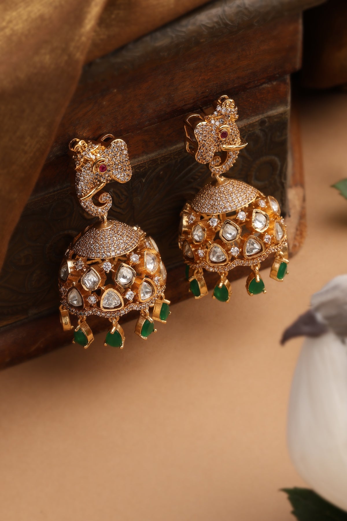 Ambi Green Polki Jhumka Earrings