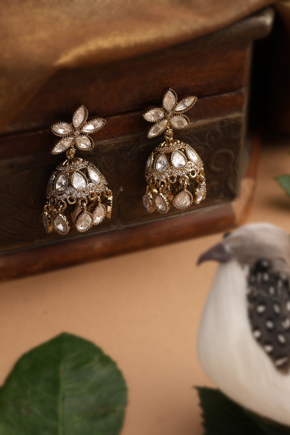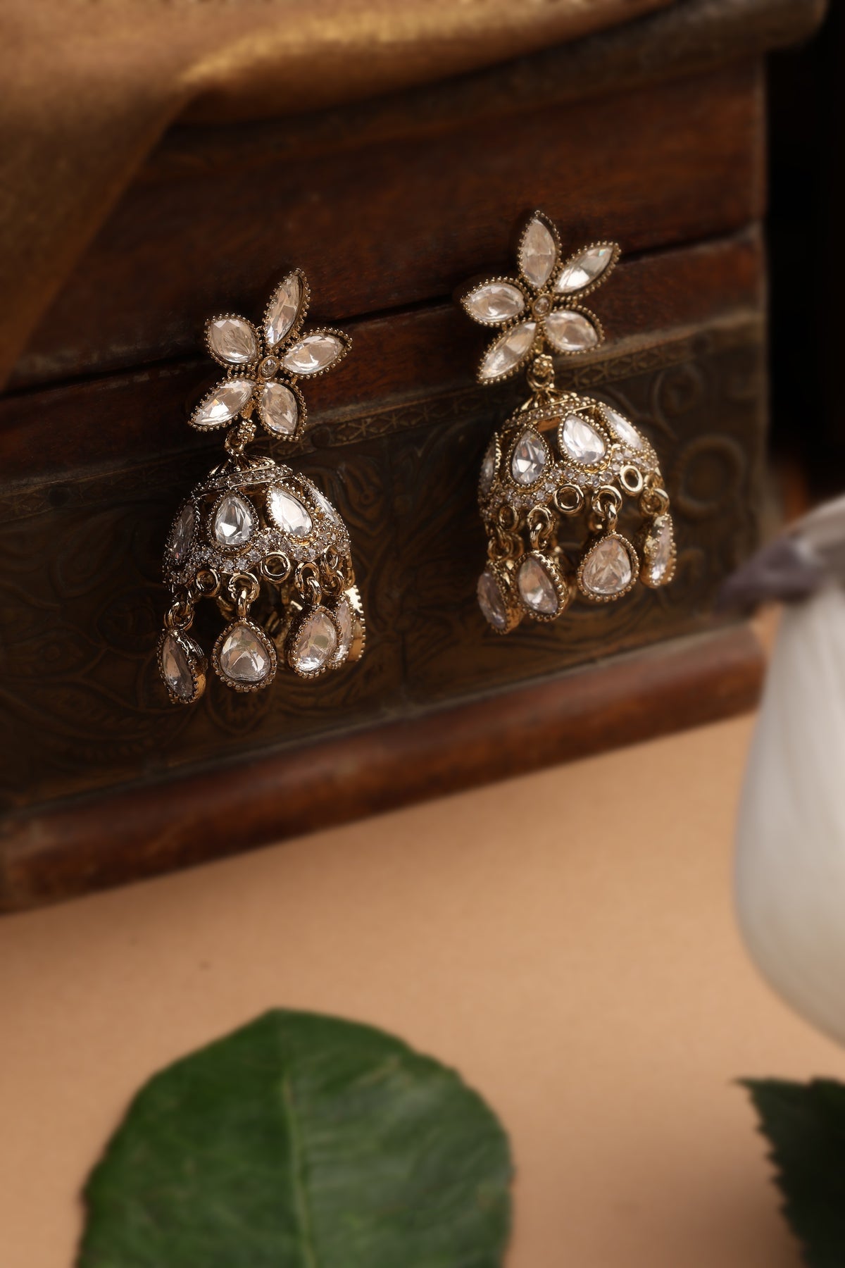 Elva Gold Polki Jhumka Earrings