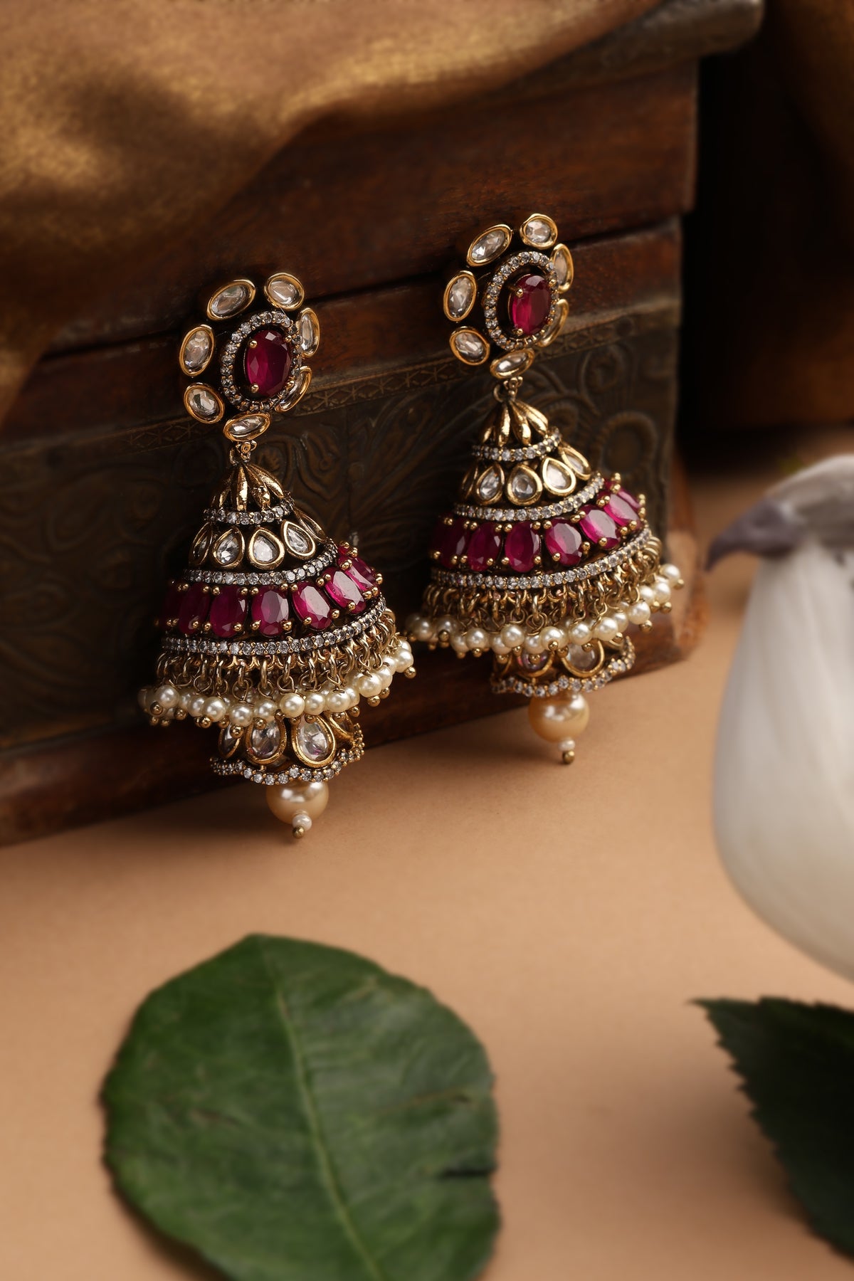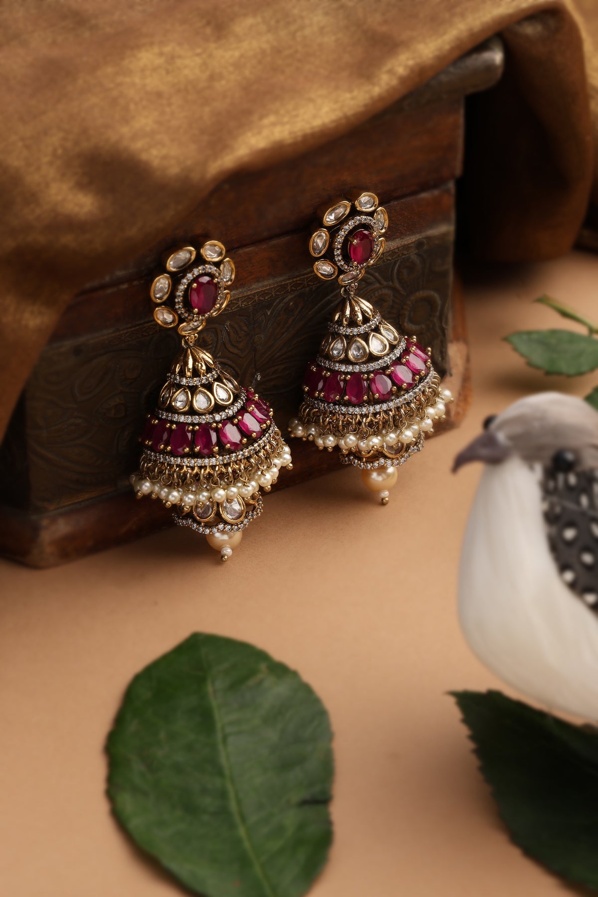 Mahi Red Polki Jhumka Earrings