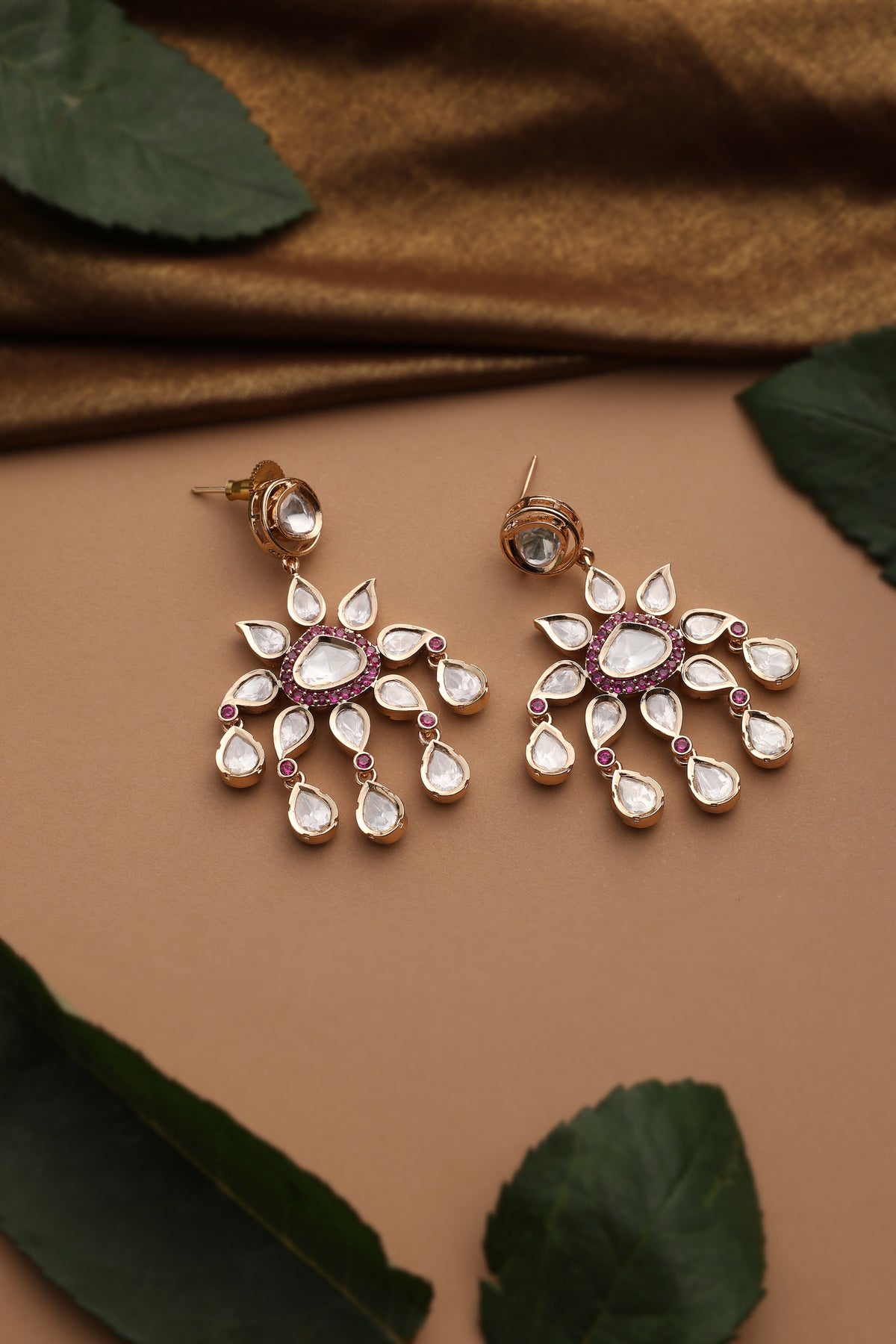 Sanya Red Polki Dangler Earrings.