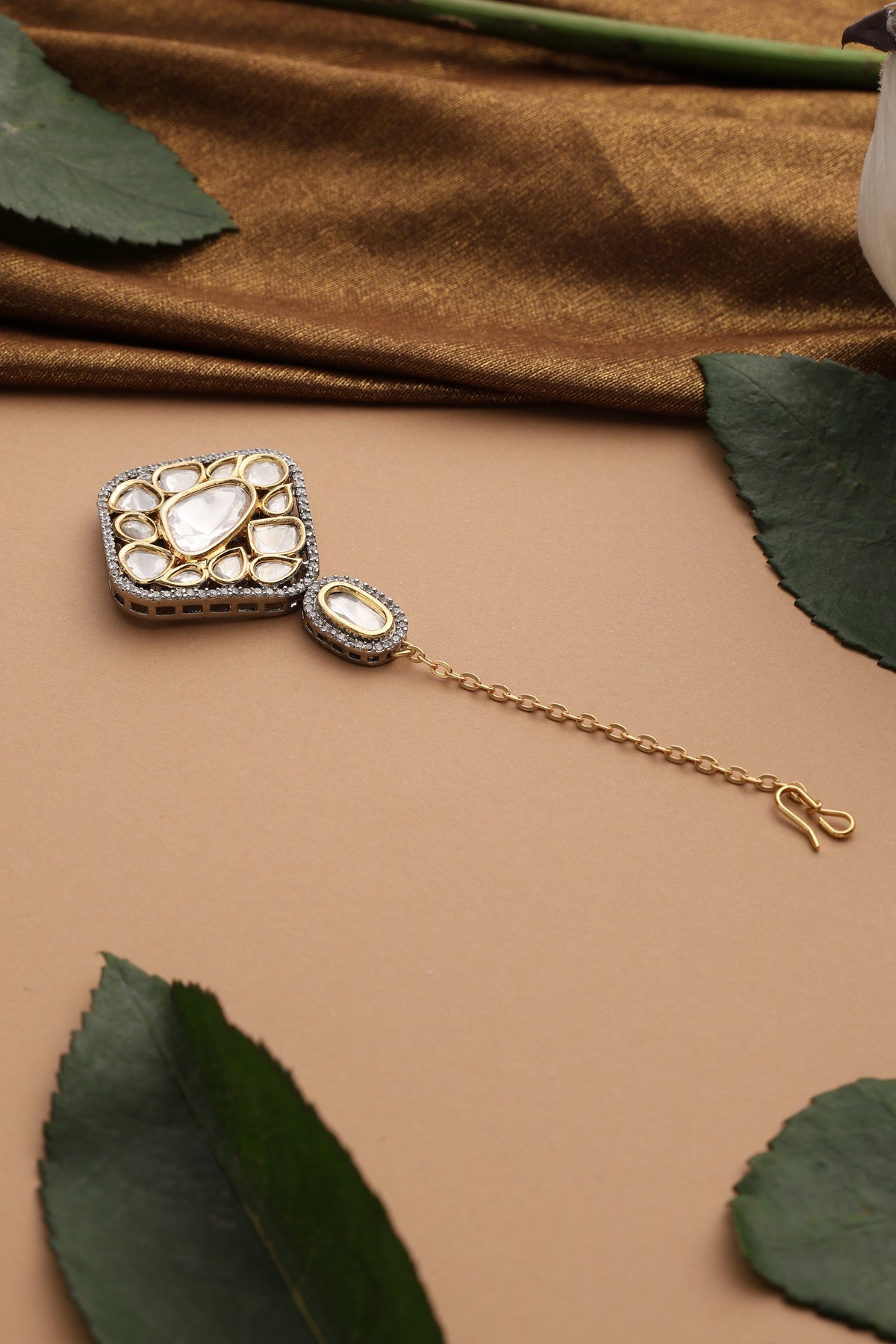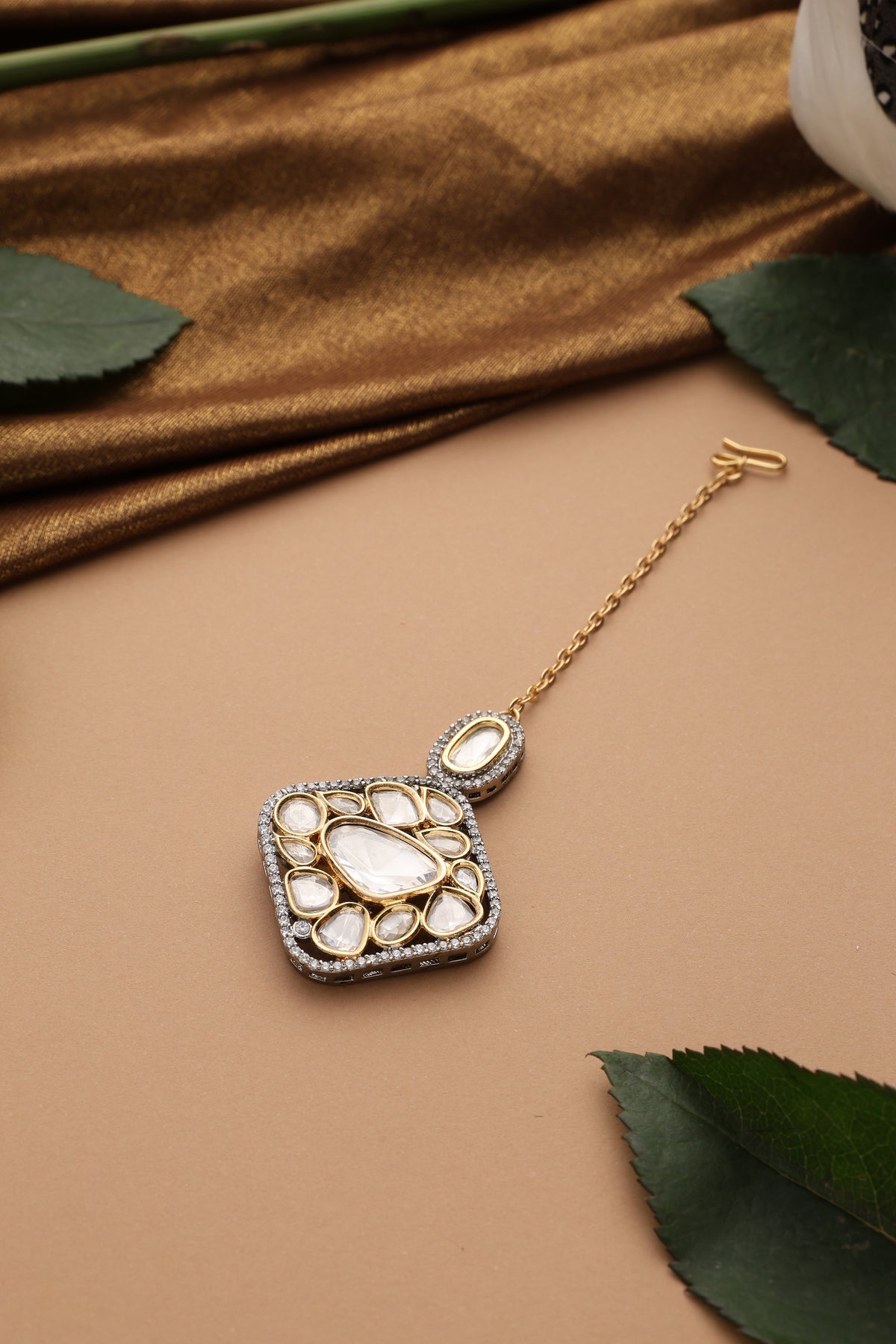Vidari Gold Polki Maang Tikka