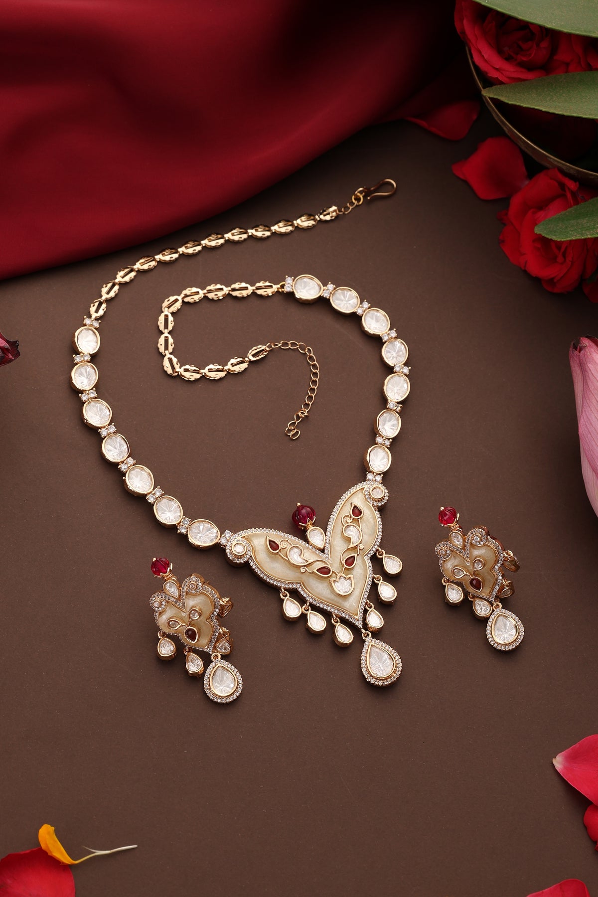 Maksh Rose Gold Polki Pendant Necklace Set.