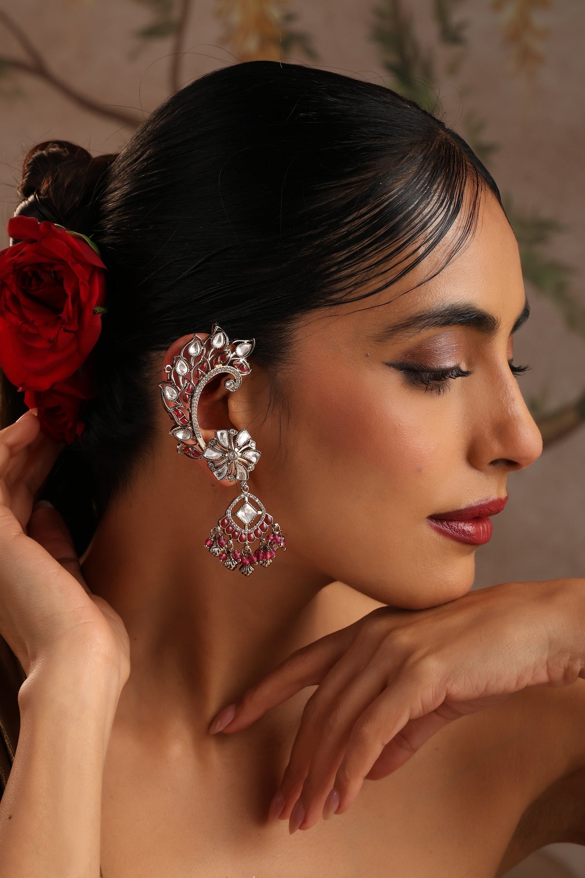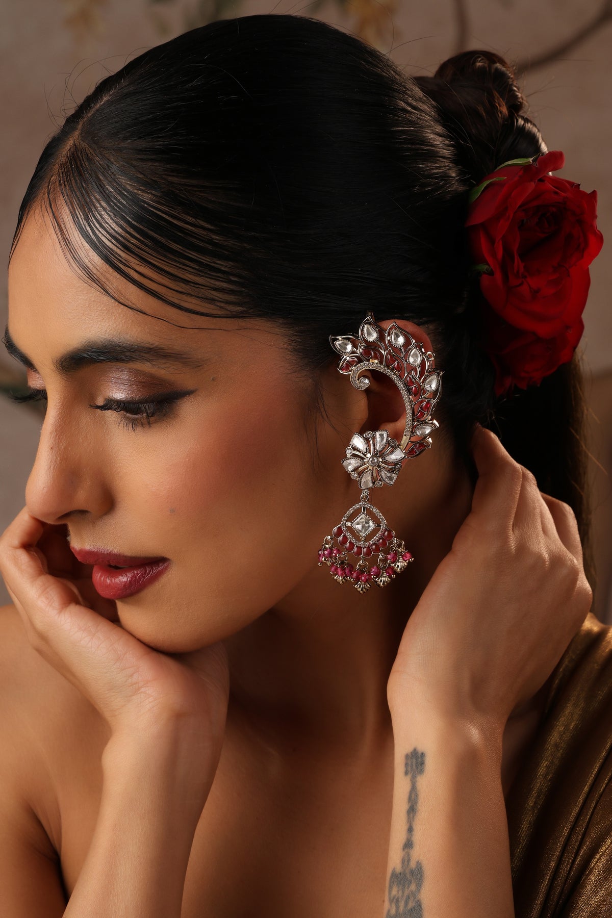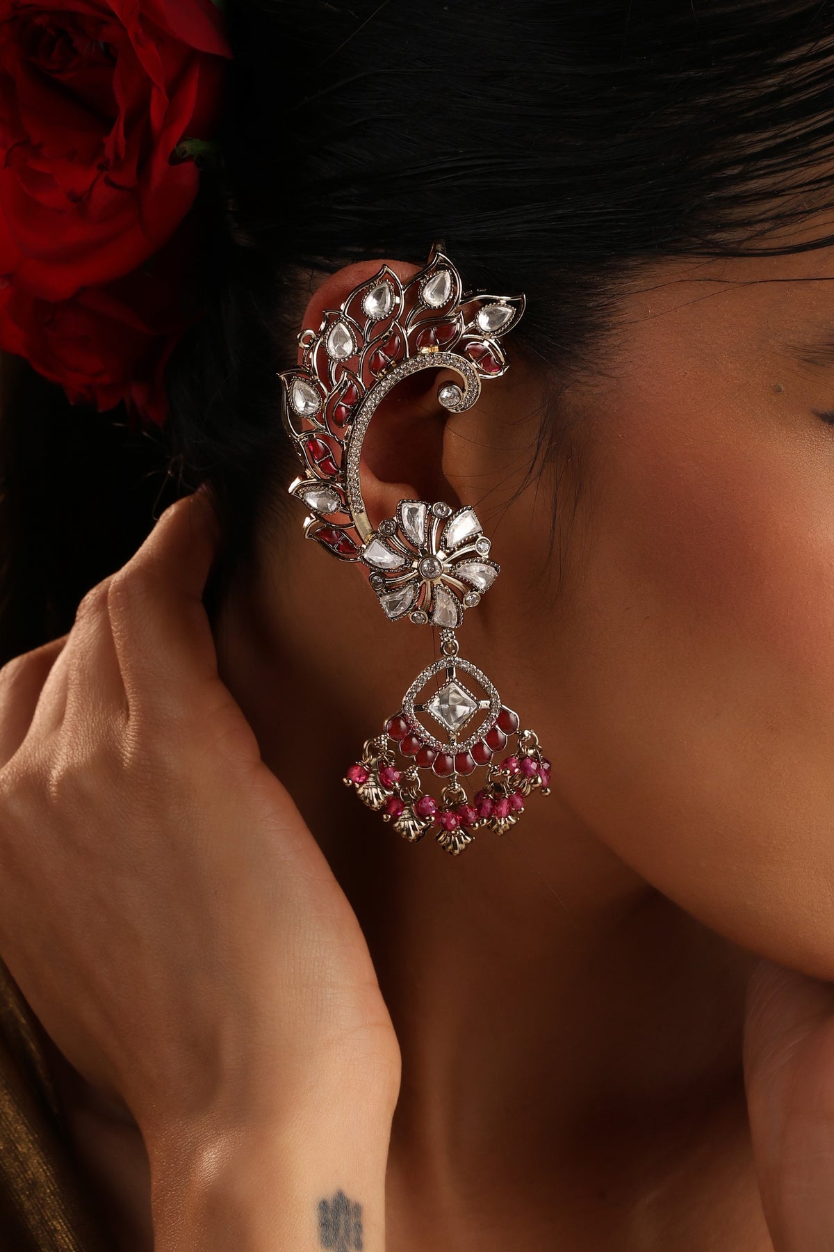 Anmaara Ruby and Polki Ear Cuff Earrings