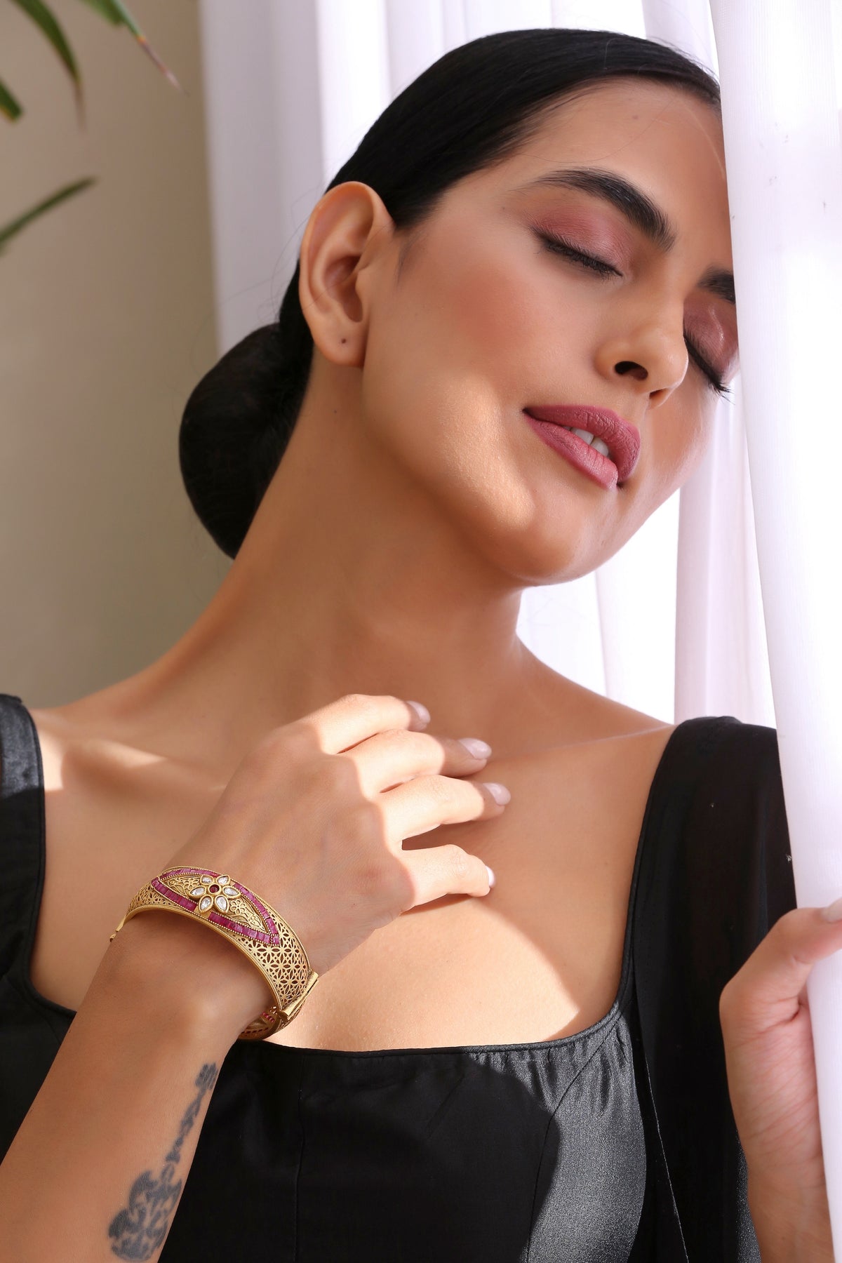 Style Tip: Put this Kada along with traditional banarasi sarees, lehengas, or Indo-western clothing. a wonderful complement to practically any time-honored classic.